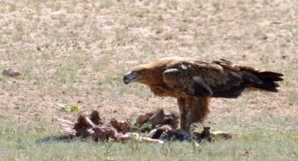 Kort voor Kamqua was daar ‘n arend besig om te pik aan oorblyfsels van ‘n roofdier se vangs.