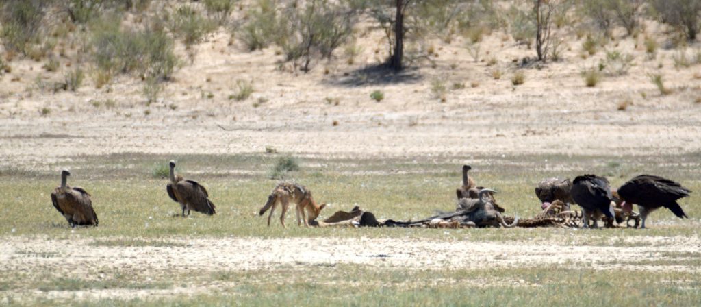 Verder af in die pad was daar nog ‘n paar aasdiere besig om ‘n karkas skoon te maak. Hierdie keer was dit darm makliker om ‘n foto geneem te kry.