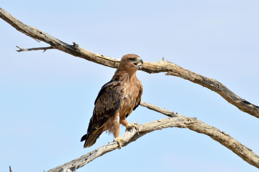 Ons het vroeg geroer en vinnig gepak sodat ons net na 7h die wasgoed kon ingee by die winkeltjie en toe pad gevat by die noordelike hek uit. Ons het rustig opgery deur die verskillende watergate, maar buiten vir twee bateleurs wat koppe bymekaar gesit het – met hulle rug op ons gekeer – en ‘n klomp blouwildebeeste by Kwang se watergat, was die veld nog redelik stil.